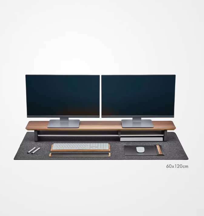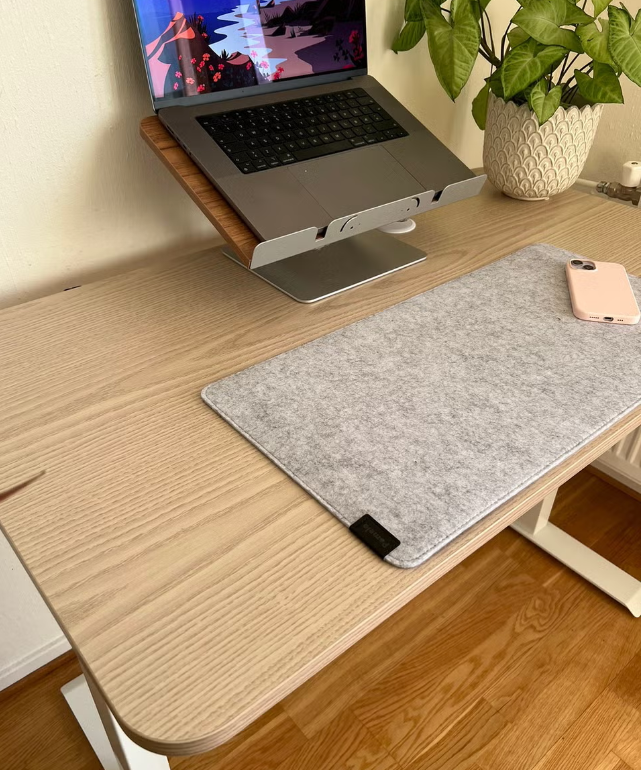 Denne mørkegrå skrivebordsmatte i premium ull gir skrivebordet ditt et stilrent og ryddig uttrykk, samtidig som den beskytter overflaten mot riper og slitasje.